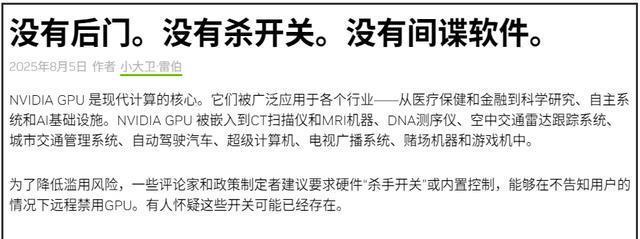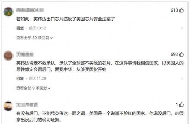 英伟达怎么也没想到,自己发表了长文解释没有安装后门,但是中国人是一点都不信,甚至有人说为啥要争论长短?直接不用就好了。